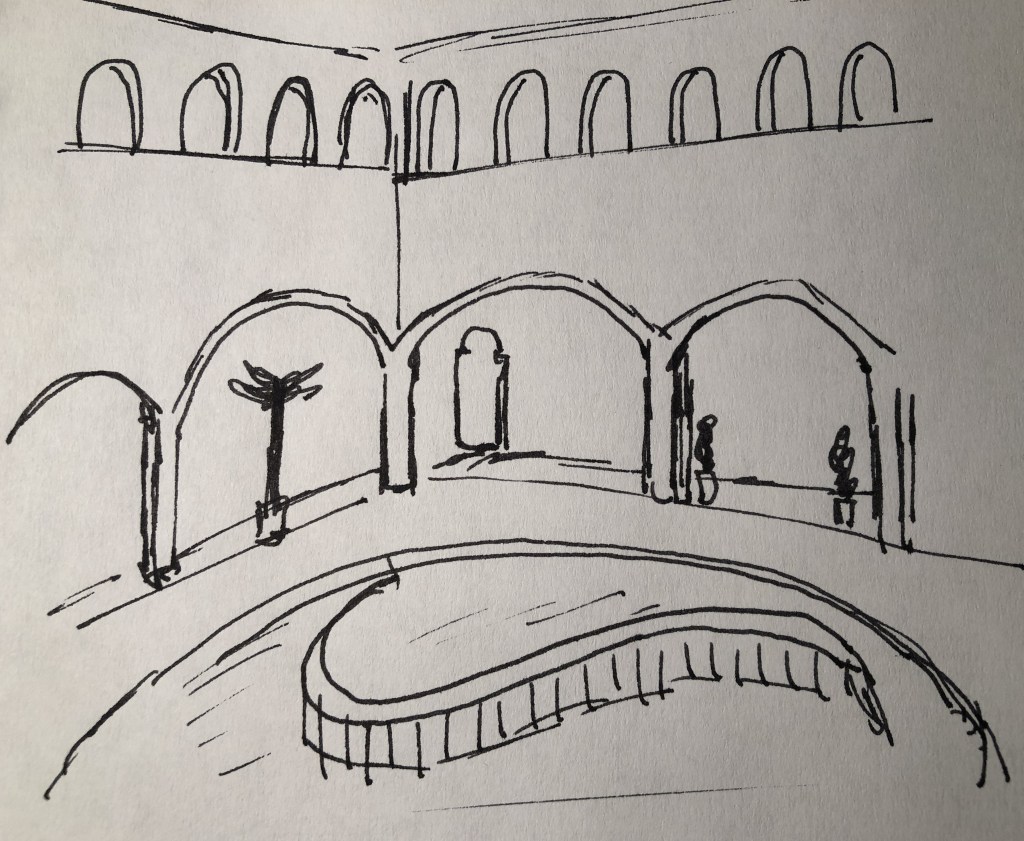 On se débarrasse du peignoir et du maillot, une fois que l’on arrive aux bains romano-irlandais. A partir de là, les thermes se déclinent en mode naturiste. Chose étonnante: nous sommes tout seuls dans la grande salle de ces bains où une dizaine de stations rayonnent autour d’un bassin d’eau. C’est un peu étrange cette sensation d’être tout seuls, tout nus, dans ce grand hall de gare. Non qu’on recherche la foule, mais on s’offre ici une formule grand luxe. Nous avons tout le loisir de passer d’une étape à l’autre, entre les zones d’air chaud, de vapeur et de bains thermaux à des températures variées.